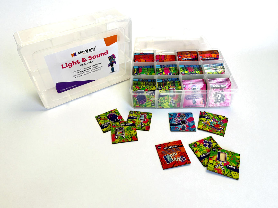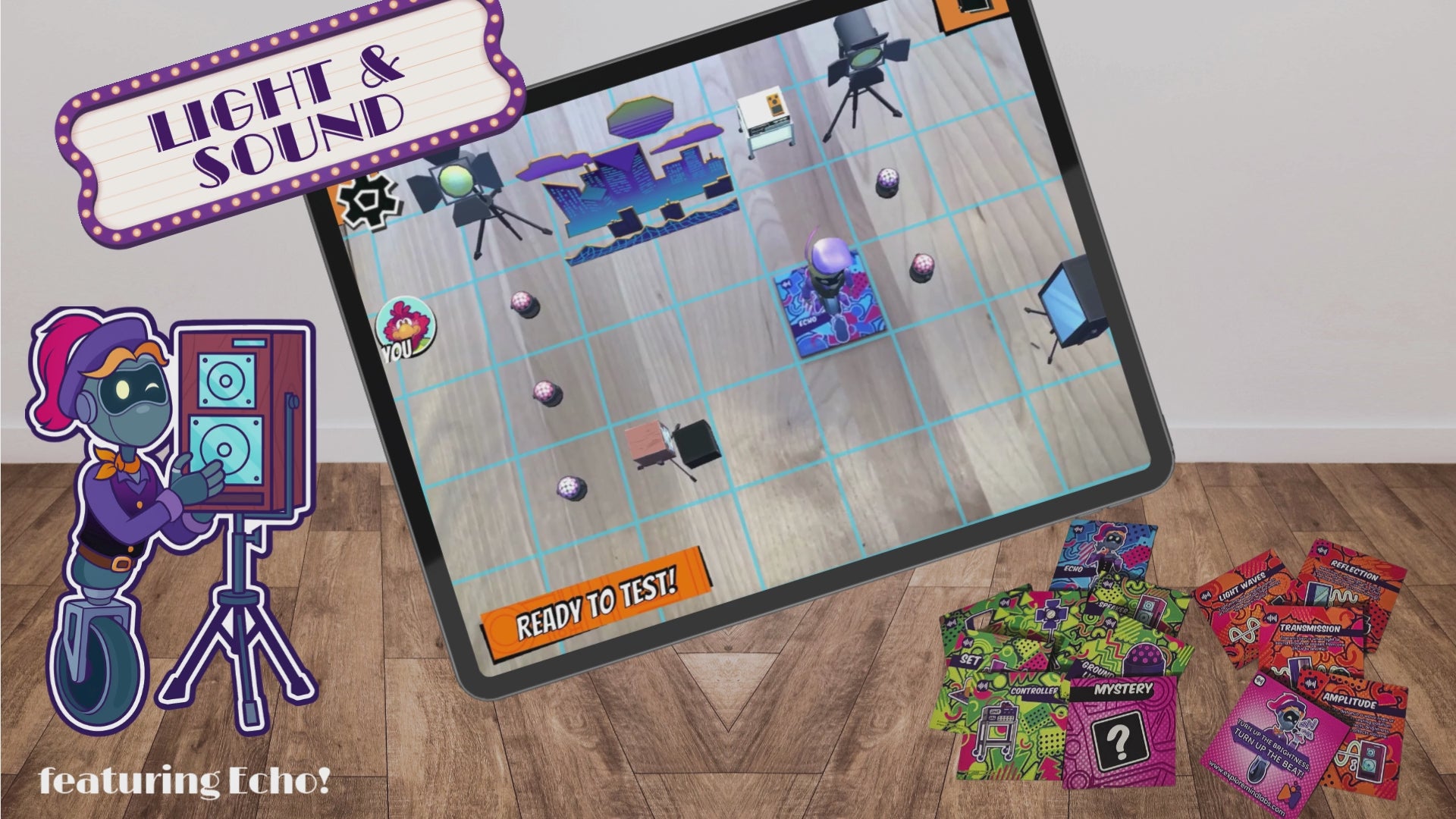 Light & Sound invites students behind the scenes to build a stage set with Echo as their guide. Using lights, speakers, spotlights, and controls, learners design a performance space and explore how light and sound shape what an audience sees and hears.